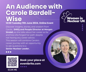 From working on environmental management for the London Olympics 2012 and being the Head of Health, Safety, and Security for HS2 to her current role, Carole will share her experiences and insights at what promises to be an inspiring and informative session at 12pm on Tuesday, June 11. There will also be the opportunity to ask questions of a senior female leader working in nuclear and the wider infrastructure sector.